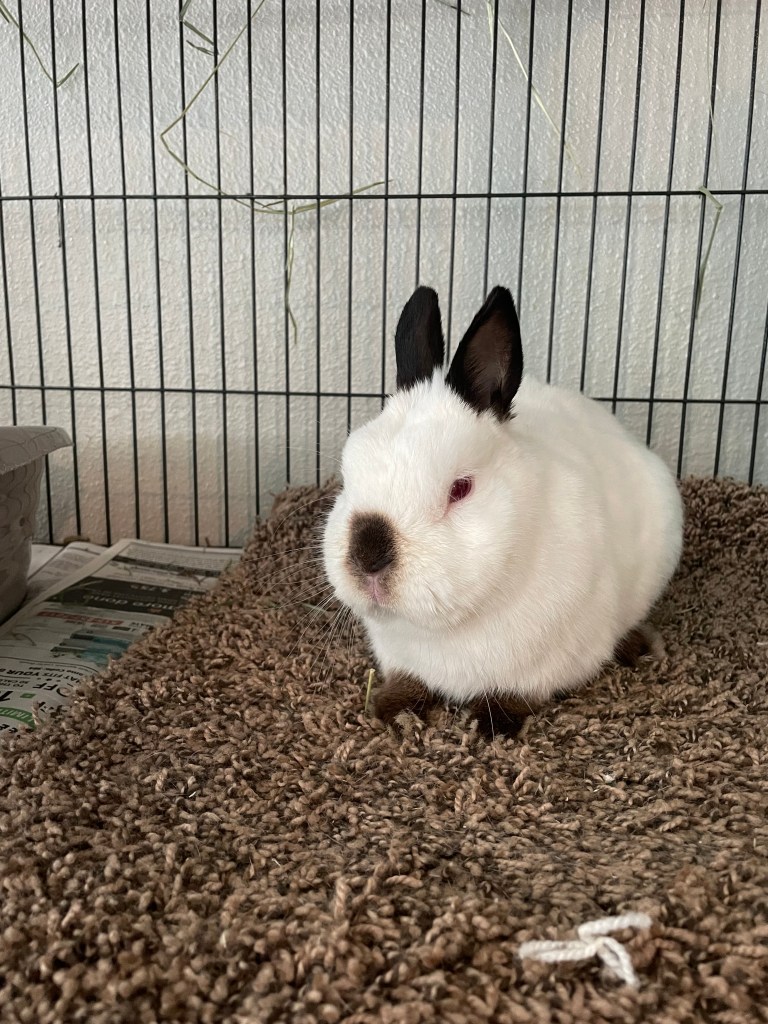 - Rabbits were housed in small cages with wire flooring